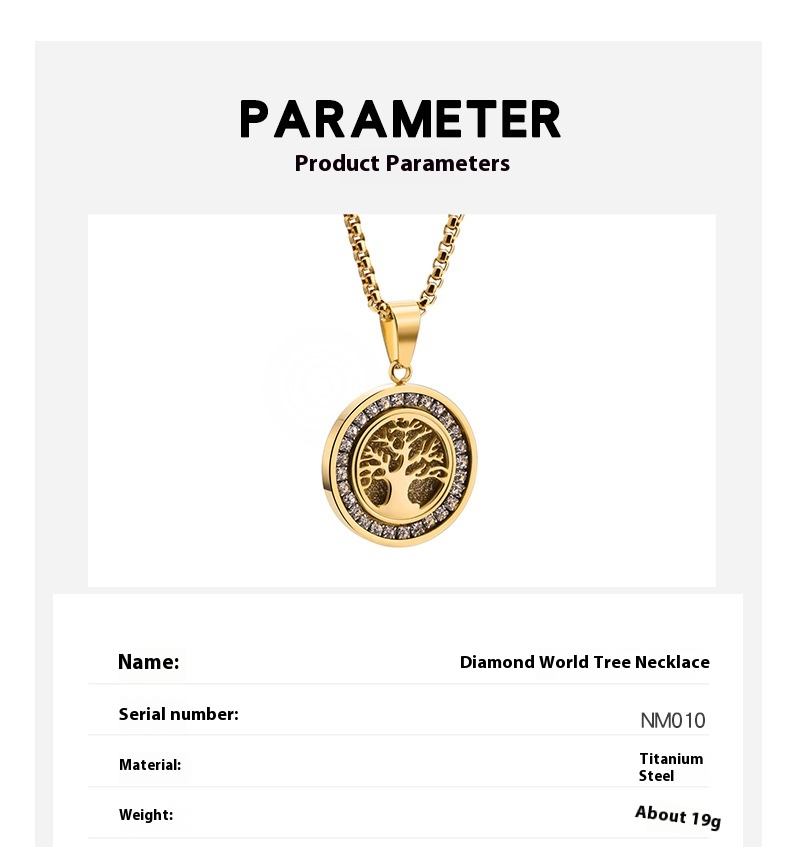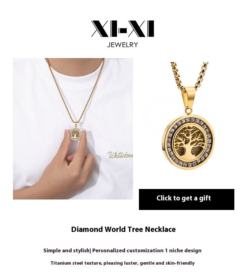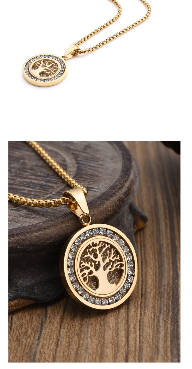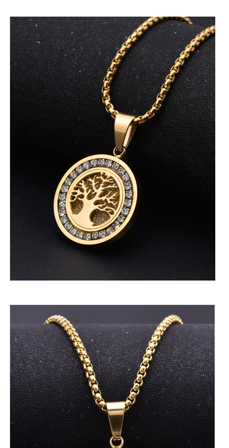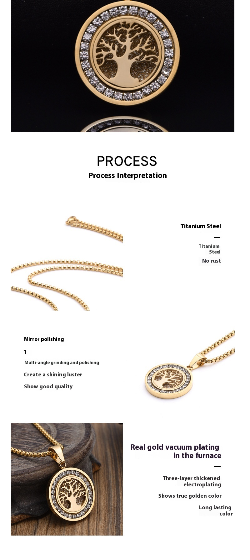 Tree Of Life Hollow Zircon Pendant European And American Style Personalized Titanium Steel Necklace For Men